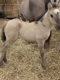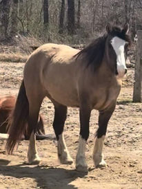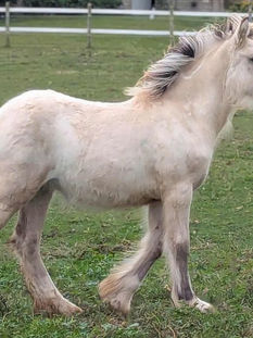 This is gypsy cross foal is the only foal we will be offering for sale in-utero this year on an individual basis. Sophie is our drop-dead gorgeous grulla Friesian sport horse mare in foal to our cremello roan gypsy stallion. PSSM1 neg, EE Dd, 15.2+ hands & her foals tend to mature the same. Sophie is a Friesian X APHA, registered friesian sport horse. With Shay as sire to this foal she has 50% chance of having another grulla foal, 25 % chance of smoky black & 25% chance of a blue roan foal, will carry a cream gene regardless of color. ALL of her foals by Shay have been grulla or grulla roans so far except her 2024 filly was a smoky blue roan. Foal sells with signed registration applications for GHRA & IGEA, can be registered as a gypsy cross with either or both registries. Shay is also pssm1 neg. He is a grandson of Romeo. You can see more of him on our stallion page. Pic's & video below. Their April of 2026 in-utero foal is available for $5500. Deposit to hold $1000, or payment plan of $500/ month till Aug when weaned. ~Holiday special $5000~ Deposit must be received by new year's day to qualify.