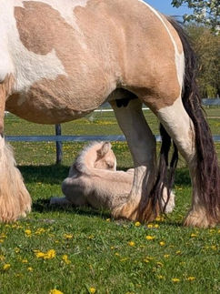 ***** Since I'd like first pick of any dun foals this coming year, for the first time ever, we won't be offering our purebred gypsy 2026 in-utero foals for sale on an individual basis. However, since I know a lot of people prefer the well-built traditional black /whites that we also breed for, I thought it would be fun for those looking for an affordable gypsy on payments with no preference on sex, to offer our first black or black & white purebred gypsy foal of 2026 at the in-utero price of $8000! Could be a colt or a filly. Since our stallion (sire to these foals) Ash is EE (black based) we get several every year. All of our purebred gypsy mares are bred to Ash this year (see him on stallions page). Our foals tend to mature in the 14 - 14.3 hand range. All are pssm1 negative by parentage. Feel free to inquire if you are interested in holding this in-utero foal with a deposit! In the rare event that we don't get your live healthy black, or black & white foal deposit will be refunded in full per contract. Deposit to hold this foal $1000 or $500 if choosing the monthly payment plan. You will have till foal is weaned next fall to pay in full or if more time is needed we have extended payment plans available too. Pic is a previous foal.
