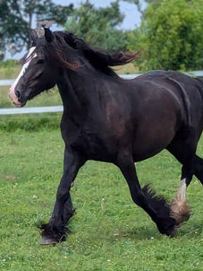 ***** Since I'd like first pick of any dun foals this coming year, for the first time ever, we won't be offering our purebred gypsy 2026 in-utero foals for sale on an individual basis. However, since I know a lot of people prefer the well-built traditional black /whites that we also breed for, I thought it would be fun for those looking for an affordable gypsy on payments with no preference on sex, to offer our first black or black & white purebred gypsy foal of 2026 at the in-utero price of $8000! Could be a colt or a filly. Since our stallion (sire to these foals) Ash is EE (black based) we get several every year. All of our purebred gypsy mares are bred to Ash this year (see him on stallions page). Our foals tend to mature in the 14 - 14.3 hand range. All are pssm1 negative by parentage. Feel free to inquire if you are interested in holding this in-utero foal with a deposit! In the rare event that we don't get your live healthy black, or black & white foal deposit will be refunded in full per contract. Deposit to hold this foal $1000 or $500 if choosing the monthly payment plan. You will have till foal is weaned next fall to pay in full or if more time is needed we have extended payment plans available too. Pic is a previous foal.