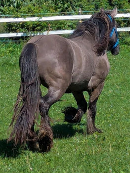 Up & coming stallion Clarion Call Notorious aka Ash. PSSM1 neg. Grulla EE, Dndn, 2022 gypsy vanner by Coats Rascal & Clarion Call Santabelle (from SD lines). GVHS and the GHA registered. 13.3 hands & still growing. Stud fee for 2026 $1500 for gypsies, clydes & shires, $800 for approves crosses. Live cover only in Plymouth WI. Only accepting 2 outside breeding's so book now. Booking fee $200 (included in price).